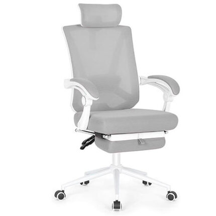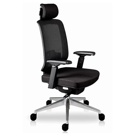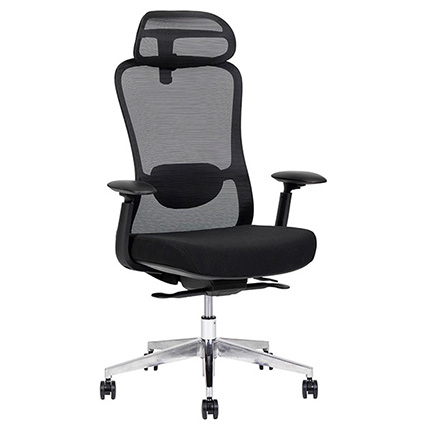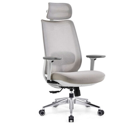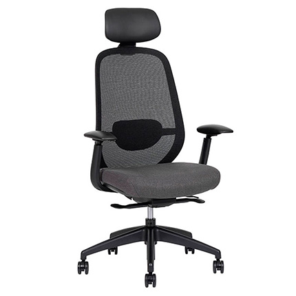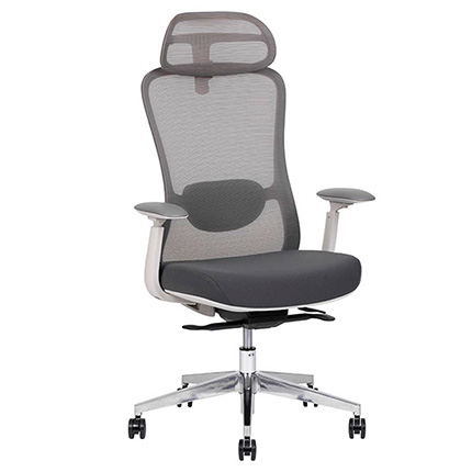 Respaldo alto con marco en nylon color gris y malla con soporte lumbar.