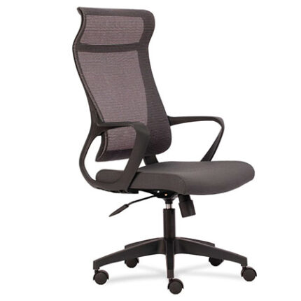 Silla ejecutiva con respaldo alto tapizado en malla gris
