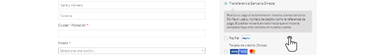 9.- Una vez ya llenado todos tus datos y revisado tu pedido escoge tu MÉTODO DE PAGO (Transferencia bancaria,  pago con tarjeta de crédito ,PayPal)