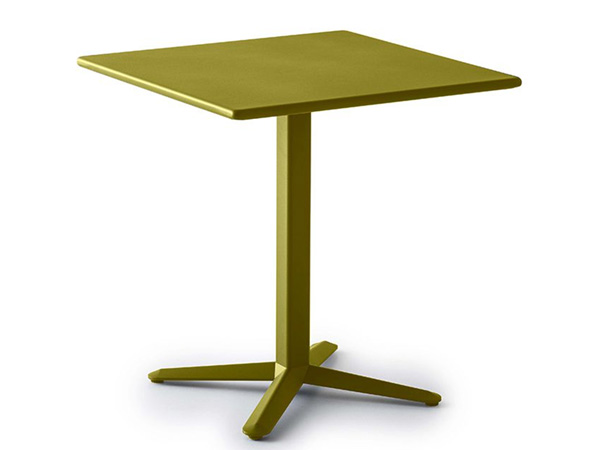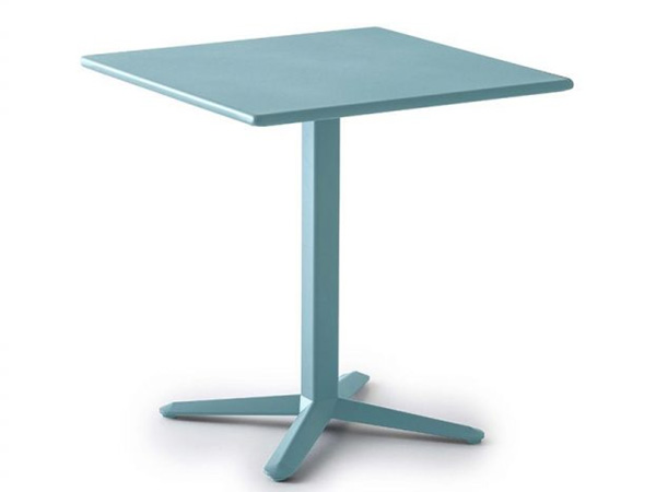 Mesa altura H.74, con base de aluminio de 4 puntas y cubierta de acero cuadrada 70.
