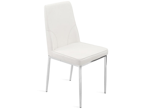 Silla tapizada en imitación piel y base de metal cromado.