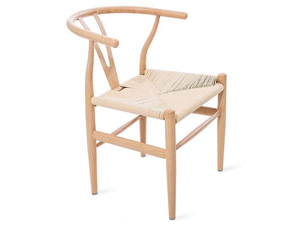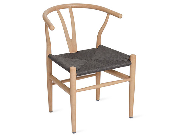 Silla de metal apariencia en madera color natural, asiento tejido en color natural y color negro.