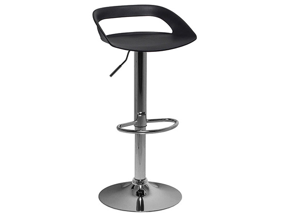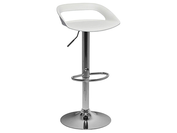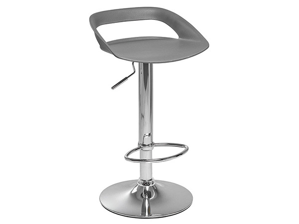 Banco de plástico con base hidráulica en metal cromado.