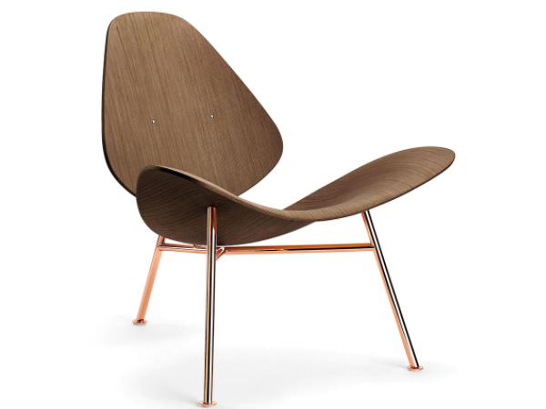 Silla Lounge en madera contrachapada con soporte metálico.