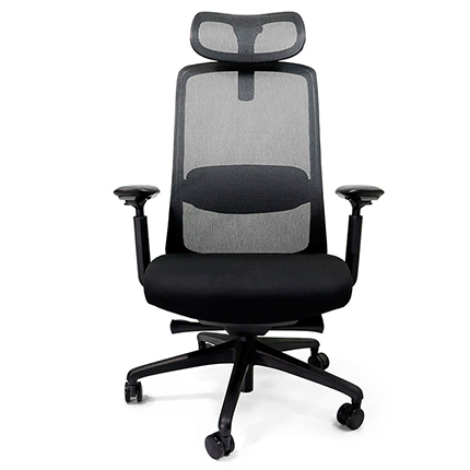 •Respaldo tapizado en malla con soporte lumbar ajustable en altura.