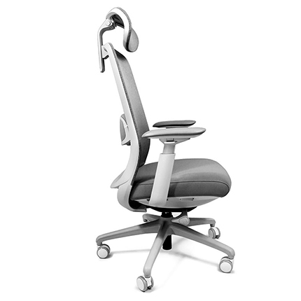 •Respaldo tapizado en malla con soporte lumbar ajustable en altura.