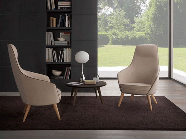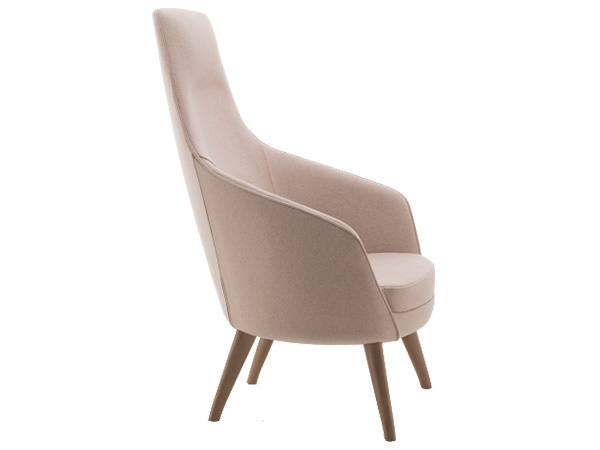 Sillón de 1 plaza con respaldo alto y descansa brazos en poliuretano inyectado y tapizado.