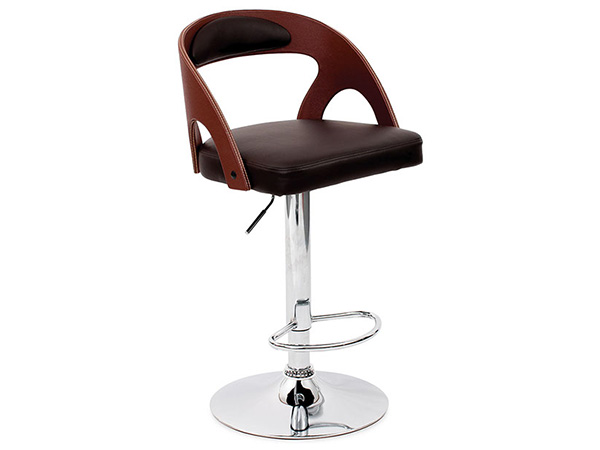 Banco forrado tipo baqueta tapizado en imitación piel con base hidráulica en metal cromado.