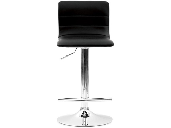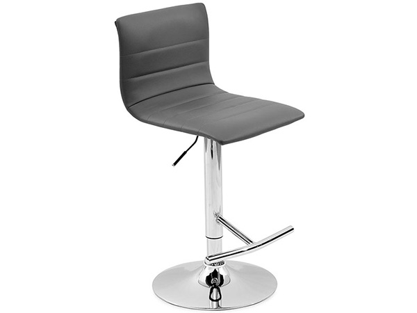 Banco tapizado en imitación piel con base hidráulica en metal cromado.