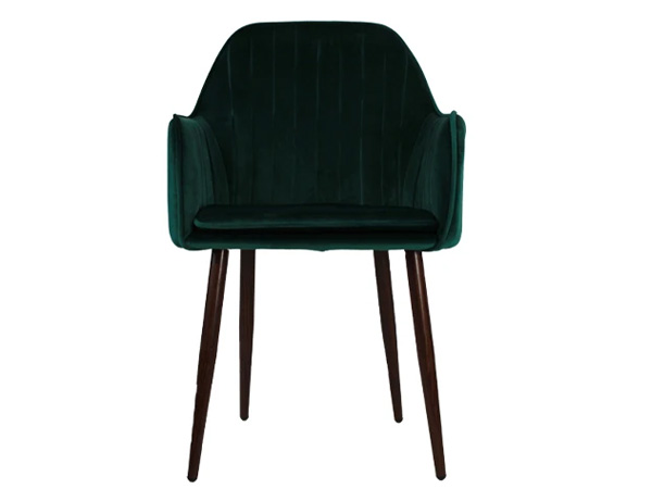 De una rígida estructura de madera tapizada en tela tipo terciopelo con un patrón de líneas verticales en su descansabrazos y respaldo, en conjunto de una base inclinada metálica estampada en madera, la convierten en el elemento ideal para sumar a cualquier tipo de espacio una dosis perfecta de comodidad y buen diseño.